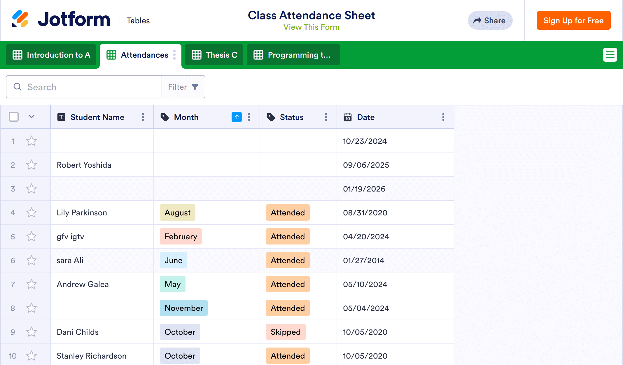 In 2025, teachers and schools worldwide trust this free Class Attendance Sheet to easily take attendance online, no matter the subject. Enter student information manually during or after class — or save time by having students fill out an online attendance form that updates the sheet instantly. You can renew it for each session, access it from any device, and download in PDF, CSV, or Excel formats — giving educators professional, ready-to-share records in 2025.