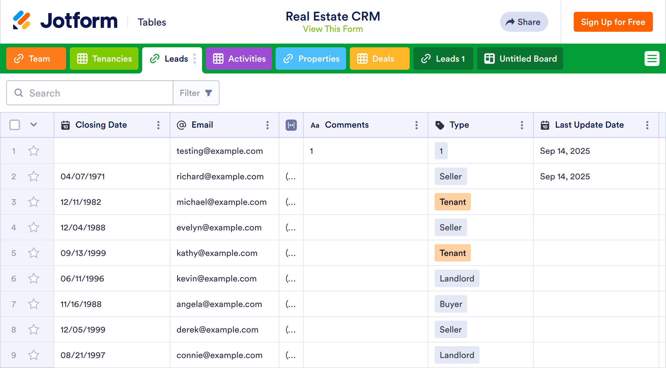 A CRM system will be highly effective in customer management especially in the Real Estate business. If you are an owner of one, you can use this template to keep your leads, categorize them by their type as whether they are a landlord, seller, tenant or a buyer; keep record of the properties with all the related information; track your activities and deals, assign tasks to your team members, and more.
