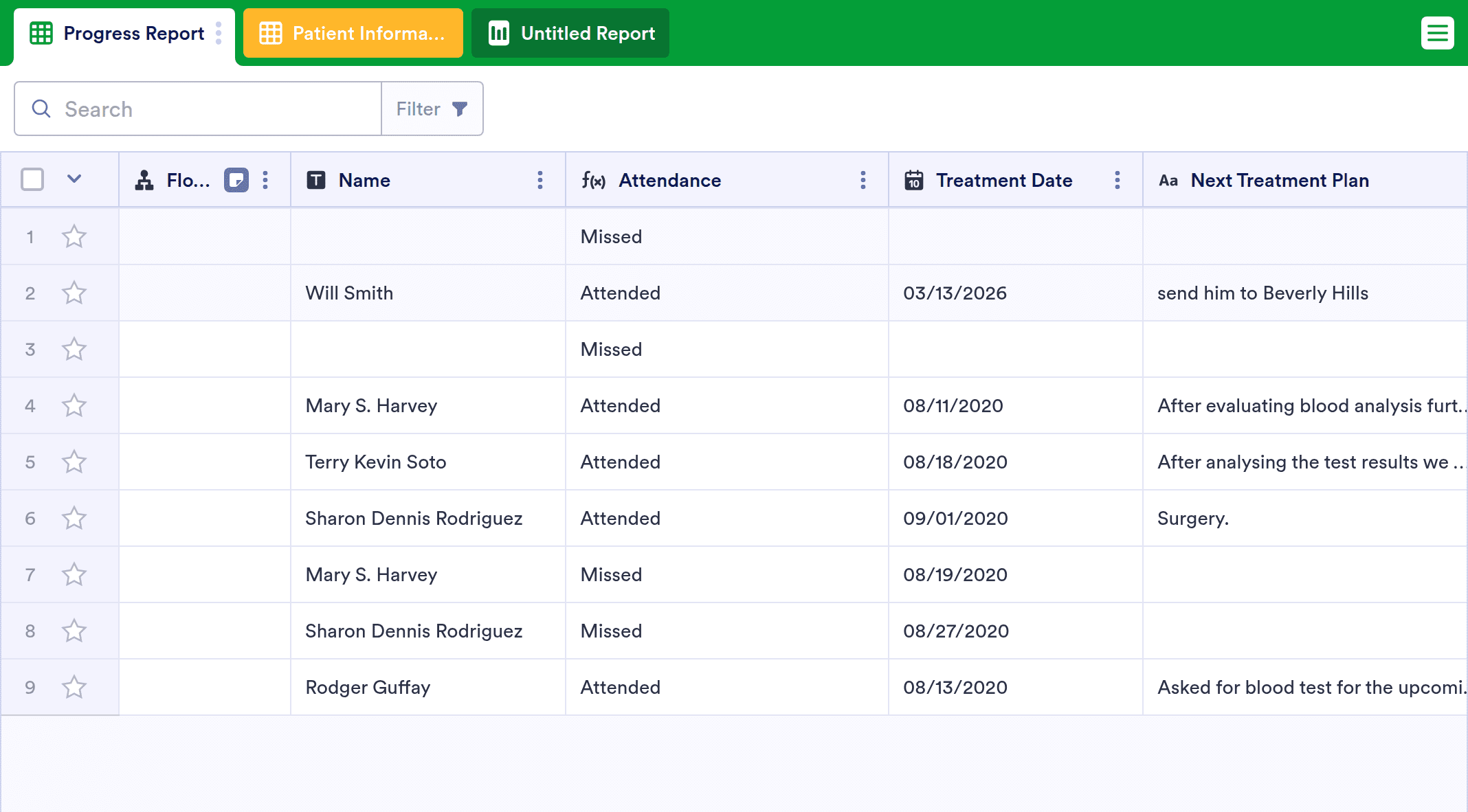 Keep track of patient health data in a professional online spreadsheet. Manage contact info, medications, appointments, and more. Opt for HIPAA compliance features.